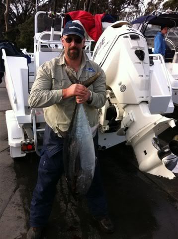 Well to cut a long story short, cause all we did was burn more fuel and give the lures a good washing AGAIN...a nice little 20kg SBT was held up by the crew of “little pig” back at the boat ramp. Need I go further.