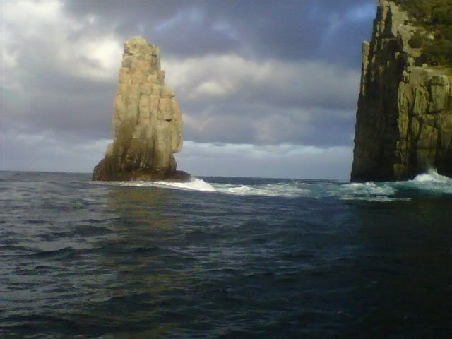 We were launched by about 12:30 and off we went down the coast to Fortescue Bay and the The Lanterns. There was a reasonable SouEasterly swell rolling which was expected to drop out over the weeekend. Well we stuck our nose round the tip to wander down to “red dirt” and bang the wind hit. Was blowing a good 25knots up Munroe's and had a good wind chop on top too